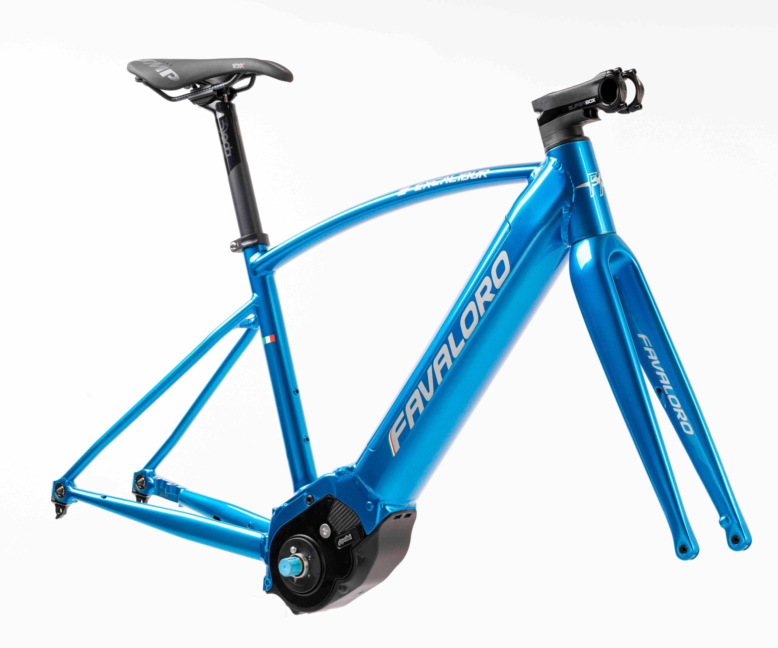 La road top in alluminio costruita su misura. Ogni dettaglio è studiato per eleganza e precisione: integrazione totale dei cavi, tubazioni dal design pulito e batteria perfettamente a filo. Tecnicamente è una vera bici da strada, con geometria identica a quella di una muscolare. Il bilanciamento dei pesi la rende scorrevole anche a motore spento.